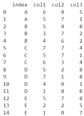 idx=['A','A','B','B','B','C','C','C','D','D','D','D','E','E','E']