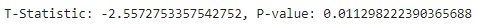 print(f"T-Statistic: {t_stat}, P-value: {p_val}")