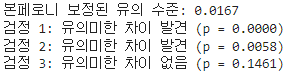 # 본페로니 보정 적용