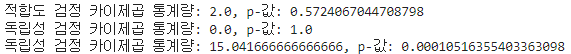 print(f"적합도 검정 카이제곱 통계량: {chi2_stat}, p-값: {p_value}")