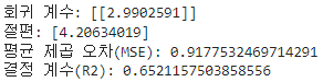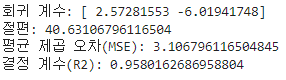 # 회귀 계수 및 절편 출력
