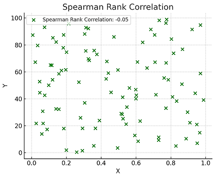 - 스피어만 상관계수는 두 변수의 순위 간의 상관 관계를 측정