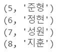 - 순서가 있는 자료형(list, tuple, dictionary, set, string)을 입력으로 받았을 때 인덱스와 값을 포함하여 리턴