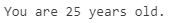 print("You are " + str(age) + " years old.")