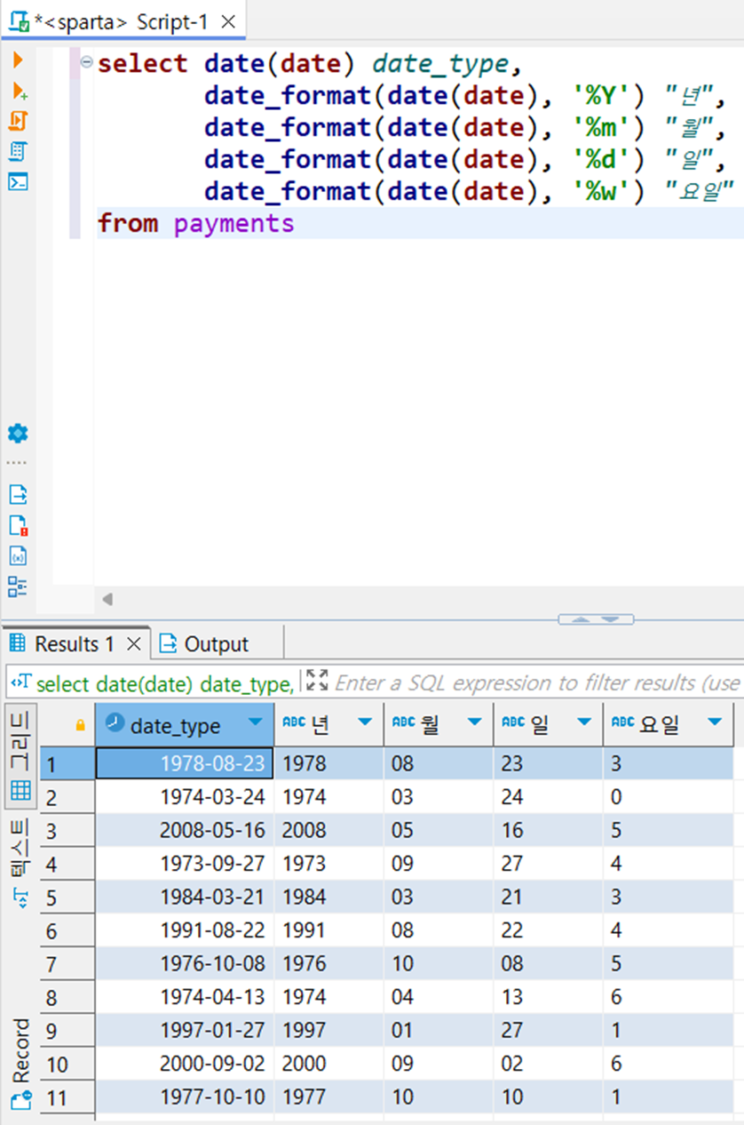 ▶ Date_format->date 타입의 컬럼을 date 형식으로 포맷팅해준다 라는 의미